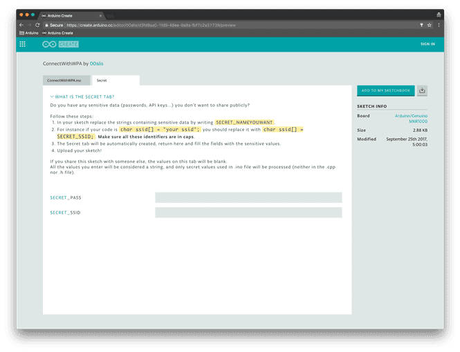 in your sketch and save it, we will create a Secret tab for you to fill out.